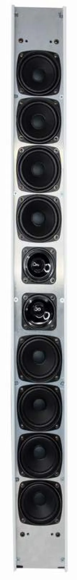 2-pásmová exteriérová celohliníková stĺpová reprosústava pre 100V rozvody. Krytie IP44. Ozvučnica je osadená 8x 3" širokopásmovými a 2x 1" vysokotónovými reproduktormi. Balenie obsahuje stenový držiak. Vyžarovanie zvuku 15° vertikálne a 150° horizontálne.